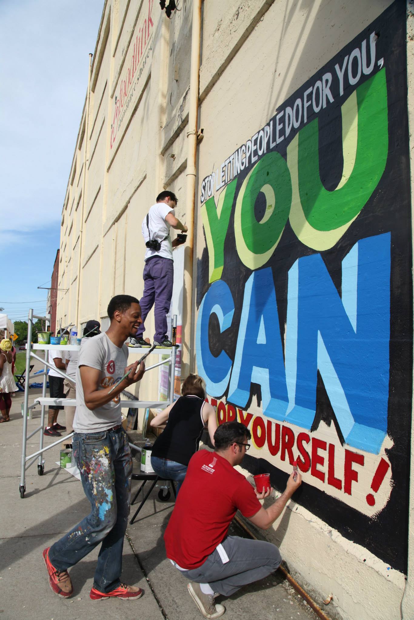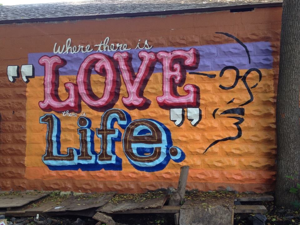 Shawn is a maker that you will find, along with his work, everywhere around Rochester. On top of helping organize the Greentopia Fashion Week, creating viral videos, and bringing arts to inner city school communities, he is often found painting large works of art in downtown Rochester. His work is usually based around a quote, either from a historical figure, a phrase often heard, or a suggestion from a local resident. Shawn often has volunteers and school groups help him out.